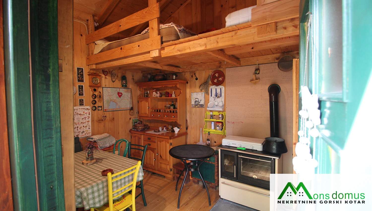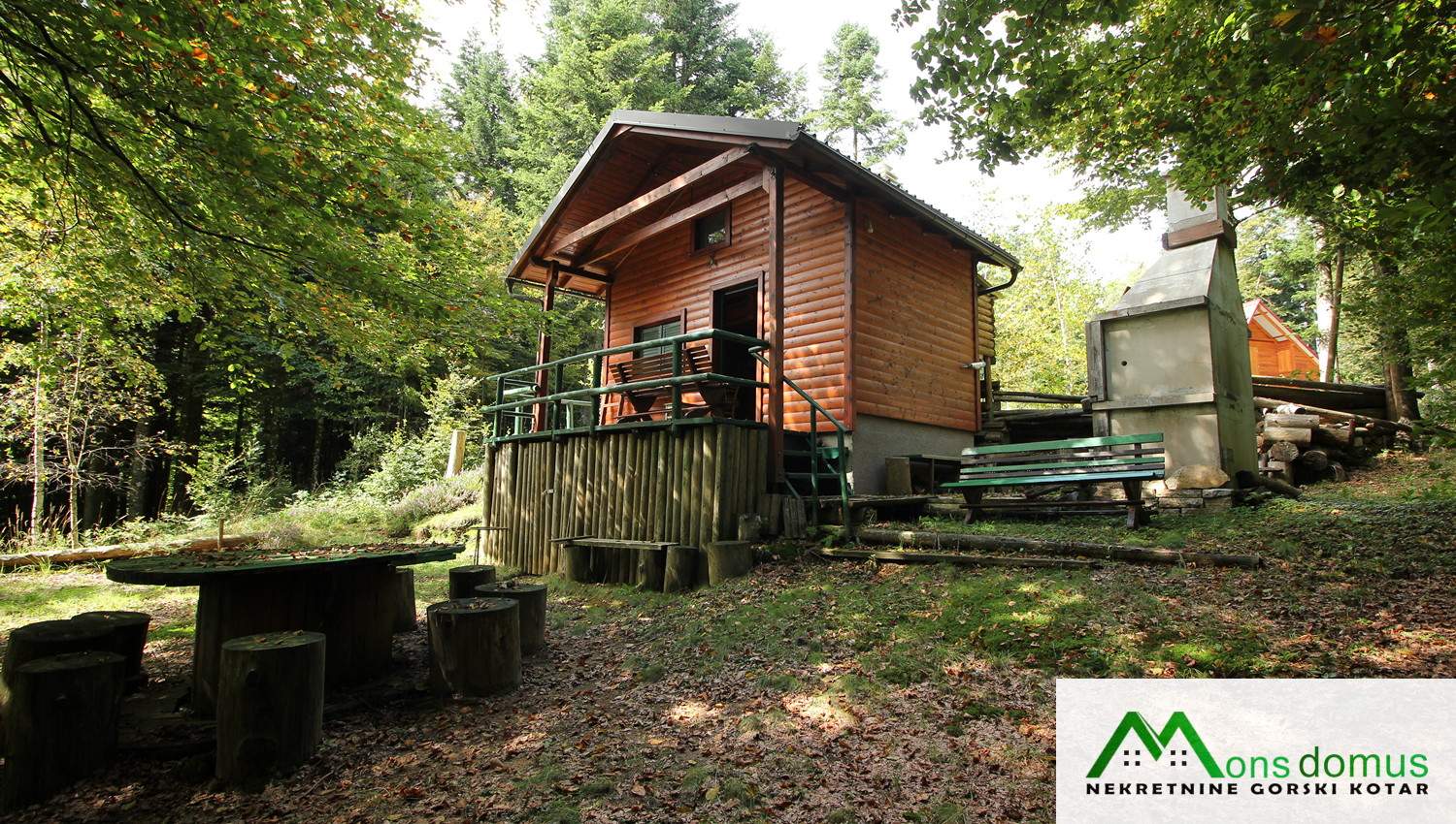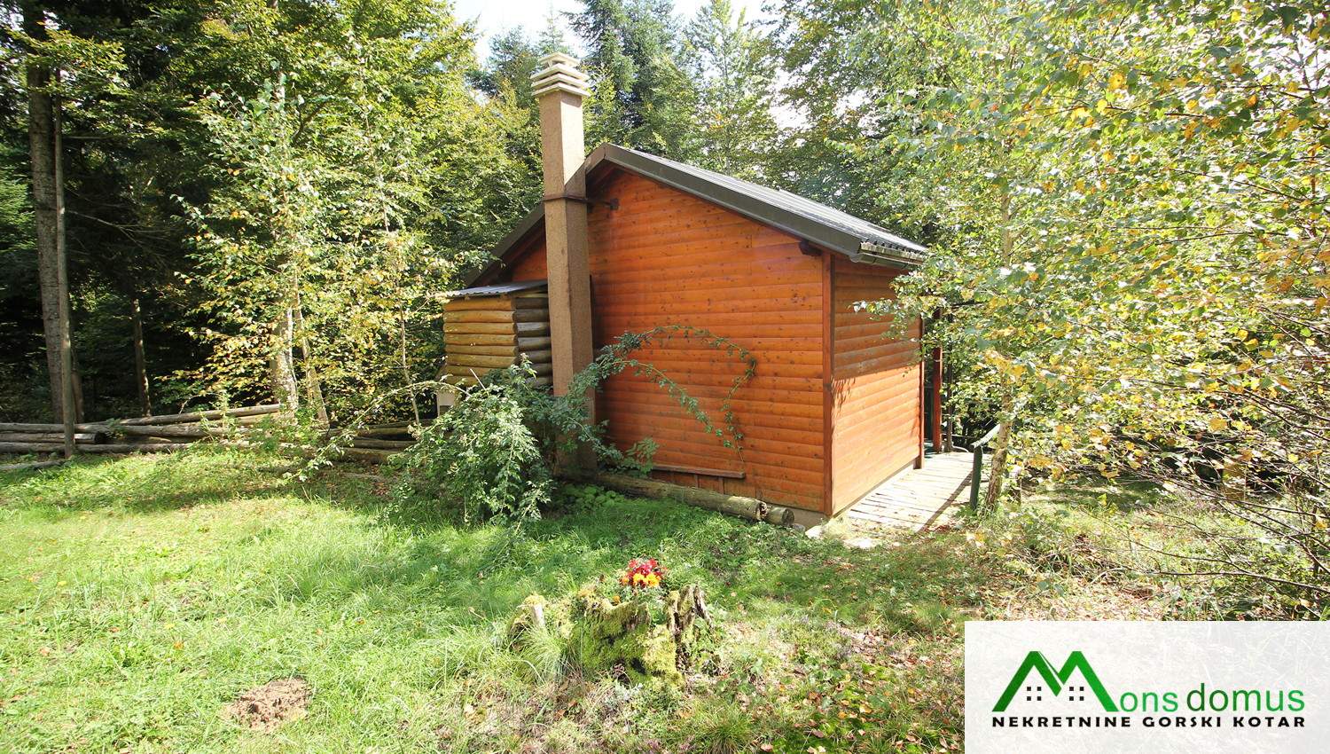 Na zemljištu se nalazi mala, drvena kućica tlocrtne površine 22 m2 s natkrivenom terasom, idealna za kraće boravke. Objekt je opremljen solarnim panelima, spremnikom za vodu te dimnjakom, što omogućuje osnovne uvjete za boravak tijekom većeg dijela godine.