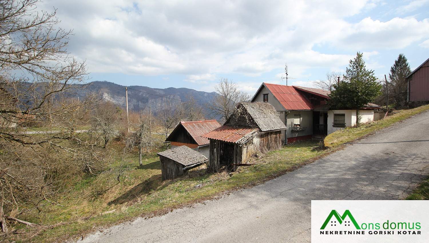 Iznad Kupske doline, na 670 metara nadmorske visine, nalazi se stara goranska kuća tlocrtne površine 62 m2, garaža zidana od betonskih blokova površine 23 m2 te drvena gospodarska zgrada površine 12 m2.