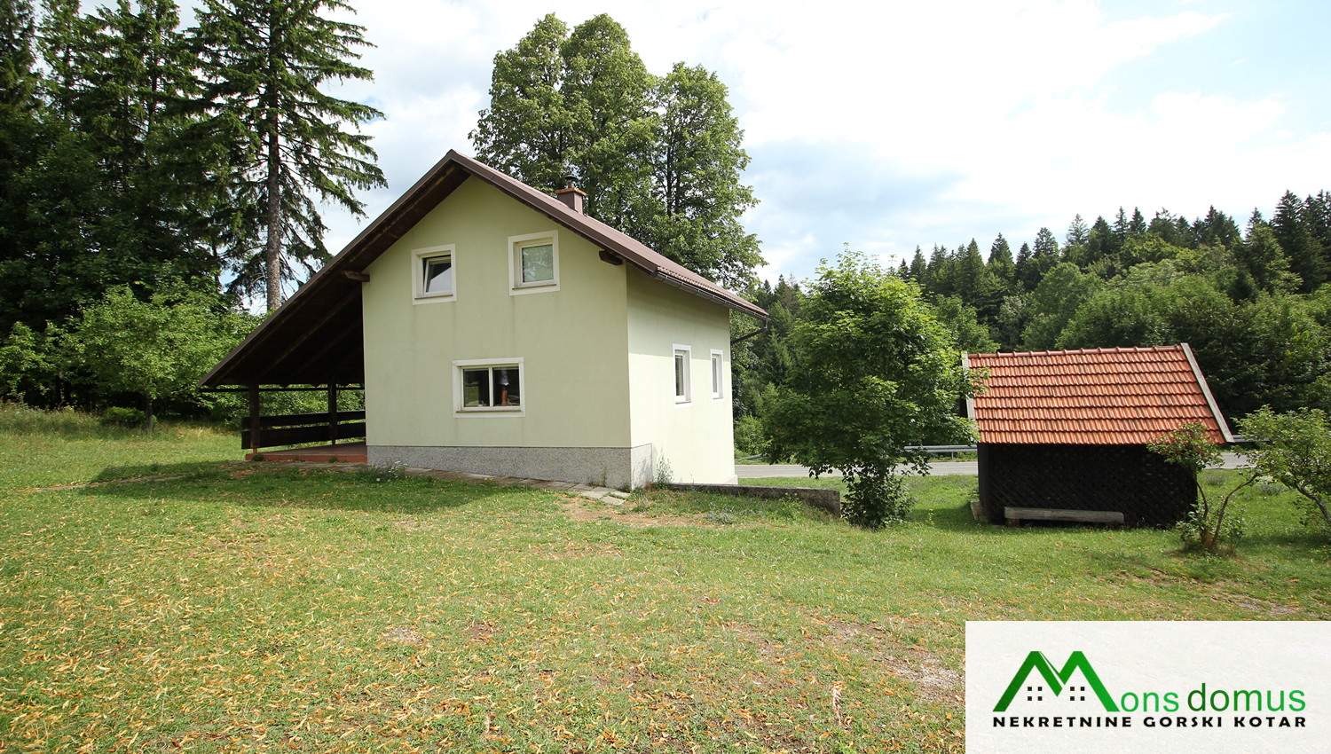 Na svega 5 km udaljenosti od Delnica i nadmorskoj visini od 815 metara, uz asfaltiranu prometnicu, kuća u vrlo dobrom stanju, stambene površine 125 m2.