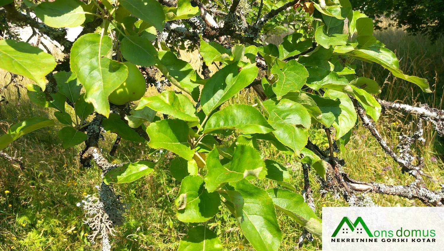 Južno orijentirano građevinsko zemljište ukupne površine cca 950 m2 na kojem se nalazi mali voćnjak (stabla krušaka, jabuka i orah) te stara, kamena ruševina.